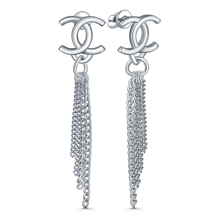 Совместные покупки Челябинск Ювелирные украшения и бижутерия Серьги — Серьги-пусеты длинные с цепями из родированного серебра 925 пробы с-0122р