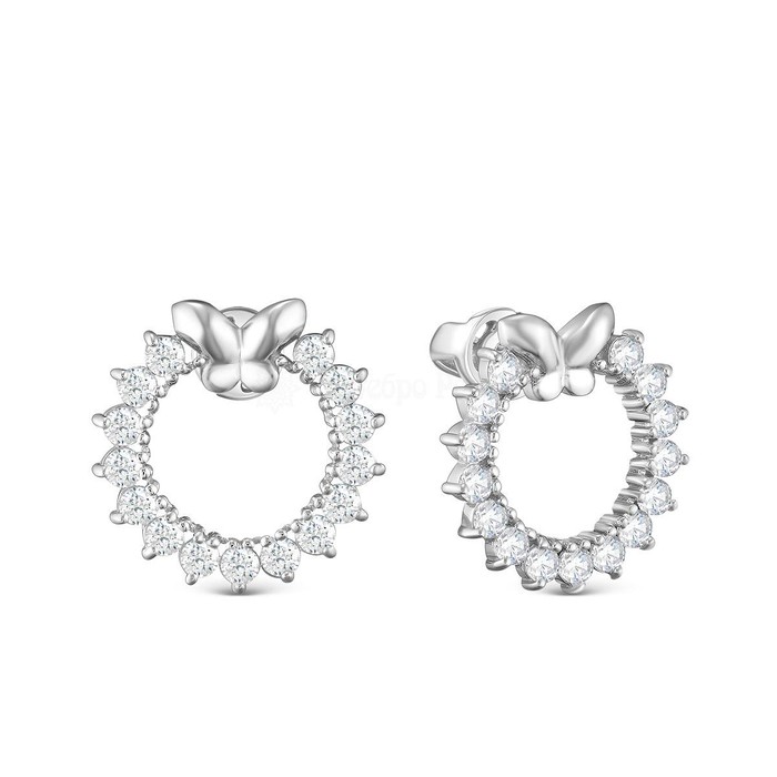 Серьги-пусеты из серебра с фианитами родированные