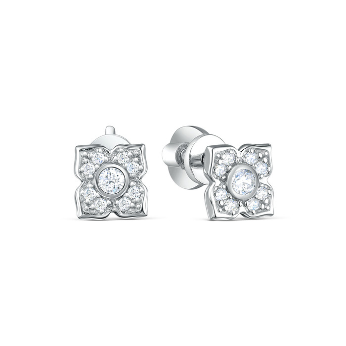 Совместные покупки Челябинск Ювелирные украшения и бижутерия Серьги — Серьги-пусеты из серебра с фианитами родированные 925 пробы 12-1191р