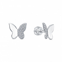 Серьги-пусеты из серебра с фианитами родированные 925 пробы с1404-04