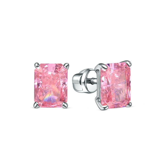 Серьги-пусеты из серебра с фианитом колотый лёд цвета морганит родированные 2-03