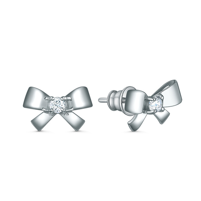 Совместные покупки Челябинск Ювелирные украшения и бижутерия Серьги — Серьги-пусеты из серебра с фианитом родированные - Банты 221-10-256-1р
