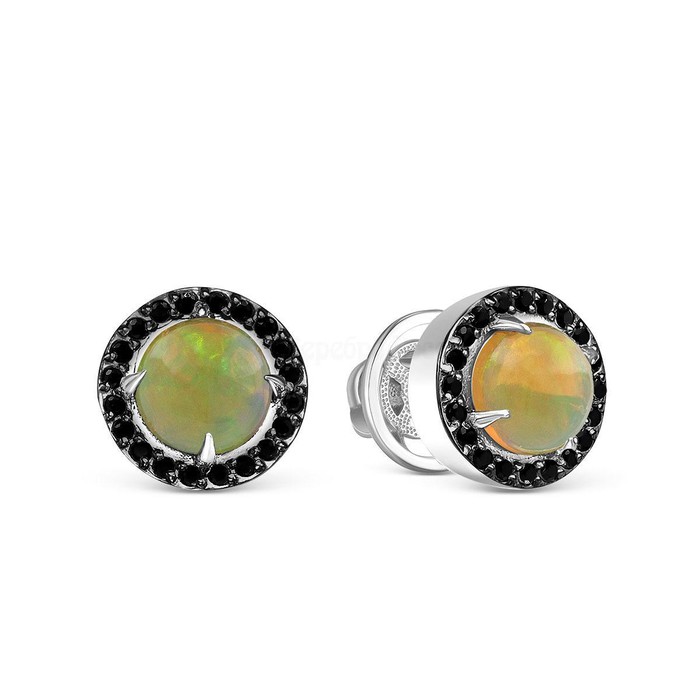 Серьги-пусеты из серебра с нат.эфиопским опалом и шпинелью родированные