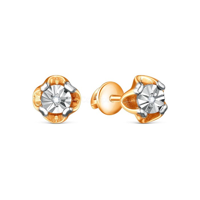 Серьги-пусеты из золочёного серебра с бриллиантами и родированием