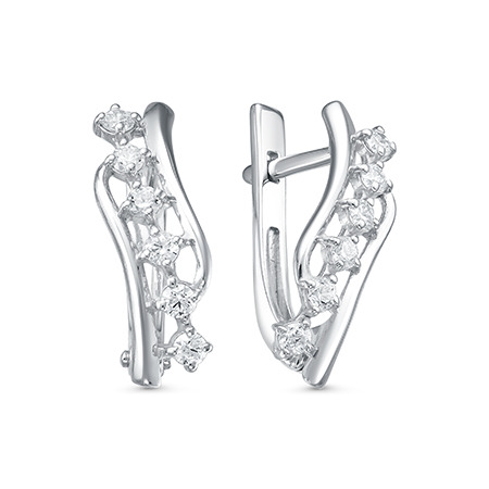 Серьги с фианитом родированные серебро 925*