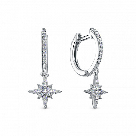 Серьги с фианитом родированные серебро 925*