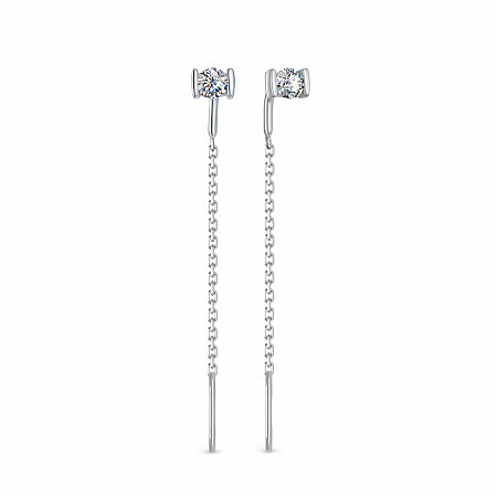 Серьги с фианитом родированные серебро 925*
