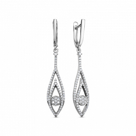Серьги с фианитом родированные серебро 925*