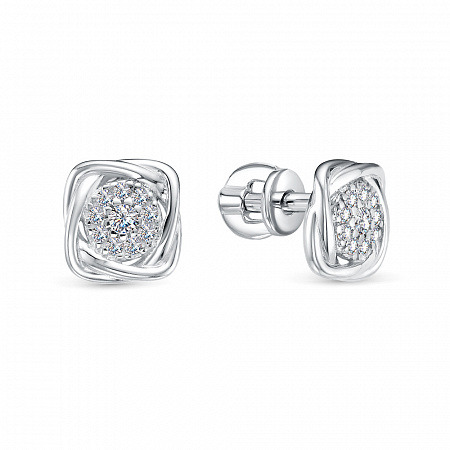 Серьги с фианитом родированные серебро 925*
