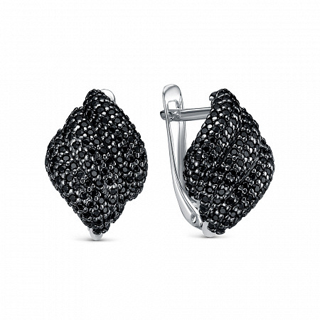 Серьги с фианитом родированные серебро 925*