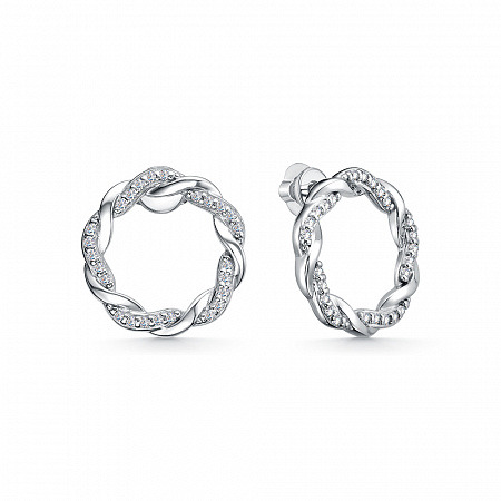 Серьги с фианитом родированные серебро 925*