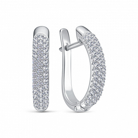 Серьги с фианитом родированные серебро 925*
