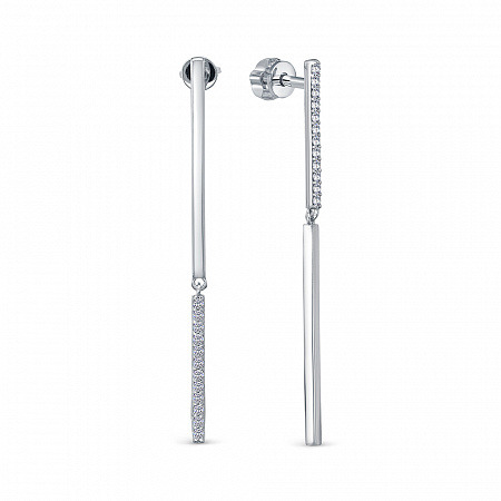 Серьги с фианитом родированные серебро 925*