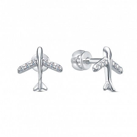 Серьги с фианитом родированные серебро 925*