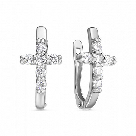 Серьги с фианитом родированные серебро 925*