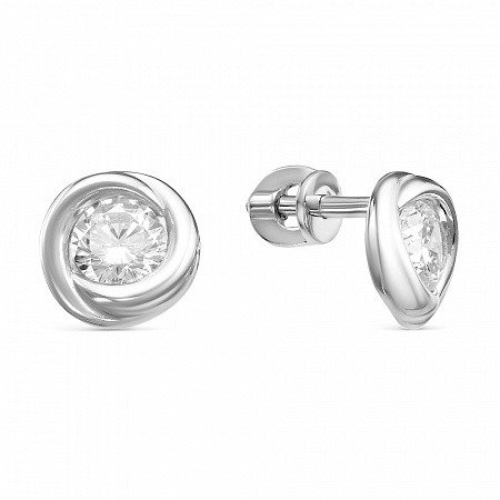 Серьги с фианитом родированные серебро 925*