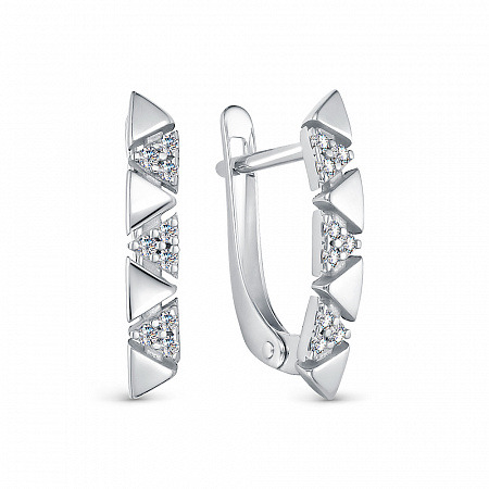 Серьги с фианитом родированные серебро 925*