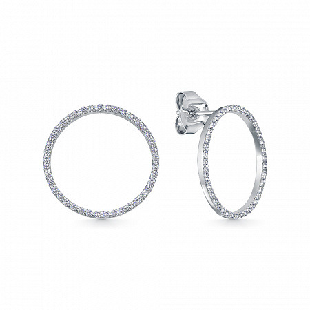 Серьги с фианитом родированные серебро 925*