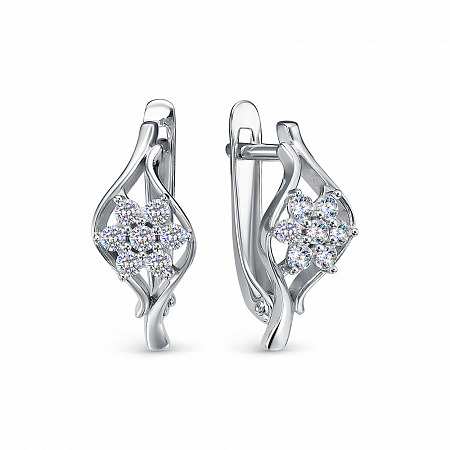 Серьги с фианитом родированные серебро 925*