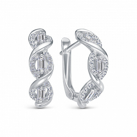 Серьги с фианитом родированные серебро 925*