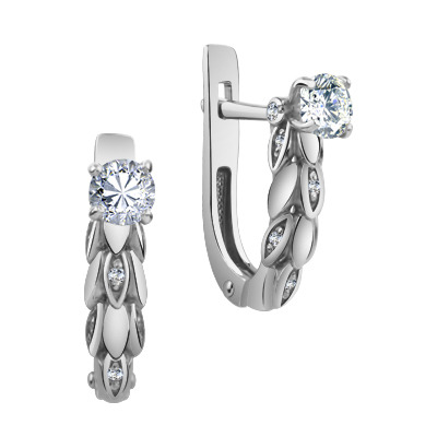 Серьги с фианитом родированные серебро 925*