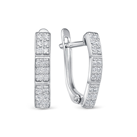Серьги с фианитом родированные серебро 925*