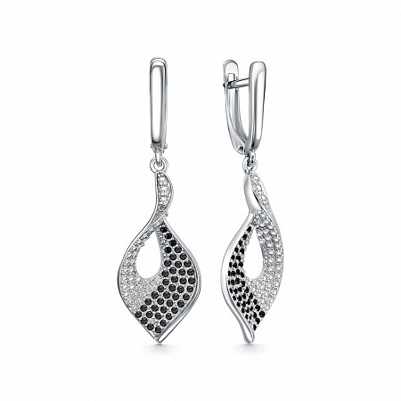 Серьги с фианитом родированные серебро 925*