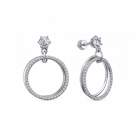 Серьги с фианитом родированные серебро 925*