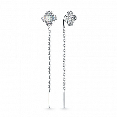 Серьги с фианитом родированные серебро 925*