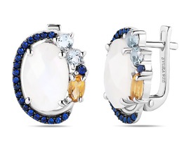 Серьги, лунный камень , топаз , цитрин , наносапфир, Абелия