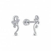 Серьги-пусеты из золочёного серебра с фианитами - Бабочки 925 пробы п6-086-4з202