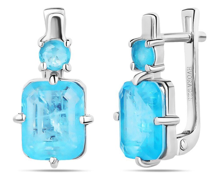 Серьги, арт.658641 Серебро Серебро 925, 4,28 гр., турмалин лазурный выращ.