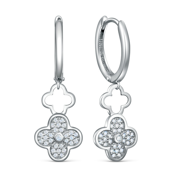 Совместные покупки Челябинск Ювелирные украшения и бижутерия Серьги — Серьги в форме клевера из серебра с фианитами родированные 925 пробы 04-302-0251