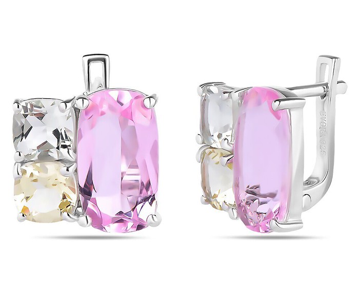 Серьги, арт.658629 Серебро Серебро 925, 6,09 гр., зеленый аметист , лимонный топаз , морганит