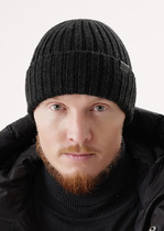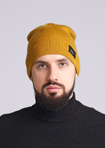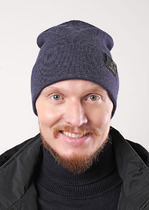 Мужская шапка по голове однотонной расцветки. Связана гладкой вязкой с узкой рельефной манжетой из полушерстяной пряжи. Утепленная модель для зимы - подкладка полный флис.