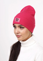 Женская двойная шапка, декорирована нашивкой логотип. Подойдёт для холодной осени- тёплой зимы.