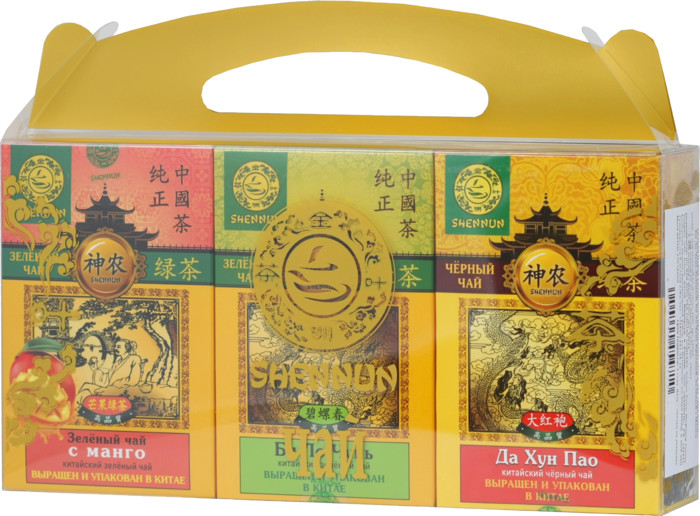 Подарочный набор китайского листового чая ассорти.1. Би Ло Чунь. Особенностью изготовления этого чая является короткая щадящая обработка, которая позволяет сохранить максимум полезных веществ, которыми так богат чайный лист. После сбора листья сразу же подвергаются процессу сушки и обжарки, чтобы сохранить их свежесть и аромат. Нежный, сладкий и освежающий. В нём присутствуют ноты цветов и фруктов, а также лёгкая горчинка, которая добавляет глубину. Аромат чая напоминает свежие цветы и фрукты, особенно заметны ноты персика и груши.2. Зеленый с манго. Напиток порадует Вас мягким освежающим вкусом с тропическими нотами манго. Его называют «великим фруктом», в соответствии с размерами деревьев, на которых он произрастает. Благодаря кусочкам экзотического фрукта настой отличается изысканностью и нежным ароматом. Готовый чай — прозрачно-зеленого цвета, прекрасно утоляет жажду, придает бодрость и силу.3. Да Хун Пао. Каждую весну со взрослых деревьев в возрасте от 10 лет собирают первый, второй и третий лист. Тип скрутки листьев Да Хун Пао называется «Черный Дракон» из-за формы и цвета готовых чаинок. Да Хун Пао можно заваривать до трех раз. Во время заваривания настой приобретает теплый цвет горчичного меда. Да Хун Пао имеет сложный насыщенный вкус и слегка печеное послевкусие, переходящее в сладость. В нем чувствуются одновременно и мягкие фруктово-цветочные, и дубово-коньячные ноты.