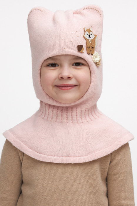 Производитель: Storm Подклад: Хлопок Тип изделия: Шлем Состав: Шерсть, акрил Старая цена: 1300Шлем для девочки на трикотажном подкладе  и ветрозащитной мембраной в районе ушей.  Декорирован фетровой "игрушкой" и композицией из страз. Рекомендуется носить при температуре до -10 С