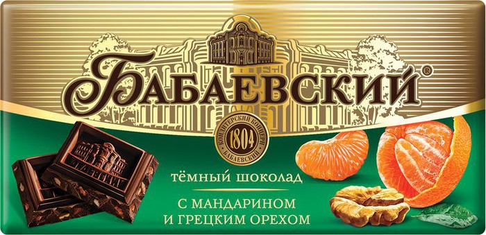 Шоколад – с детства узнаваемый вкус Нового года, а запах мандаринов всегда ассоциируется с зимними каникулами и ожиданием чуда! Шоколад «Бабаевский» с грецким орехом и мандарином» создаёт праздничное настроение своим ярким вкусом и сезонной упаковкой из особой серии.