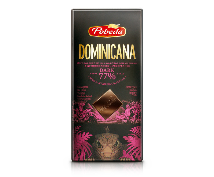 Что объединяет Колумбию, Доминикану, Гану, Кот-Д’Ивуар, Мадагаскар, Эквадор и Перу? Во всех этих странах выращивают первосортные какао-бобы, которые легли в основу нашей премиальной этнической коллекции «Сингл Ориджин». Приглашаем вас в гастрономическое путешествие по странам, где произрастают какао-бобы с уникальным вкусом. Премиальный горький шоколад «Доминикана» 77 % приготовлен из отборных какао-бобов, которые выращивают на плантациях провинций Дуарта и Пуэрто-Плата. Насыщенный вкус какао с древесными нотками, нотками табака и множества специй; в сопровождении фруктовых ароматов: банана, абрикоса, гуавы, с легким терпко-горьким послевкусием. Для влюбленных в шоколад.