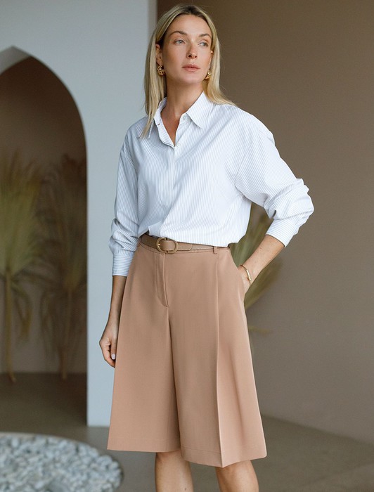 Состав: 60%ПЭ 36%Вис 4%ПУ; ПОДКЛАДКА- 100%ПЭШорты-бермуды выполнены из эластичной поливискозы. Свободная модель подходит для любой фигуры, скрывает недостатки и подчеркивает достоинства. Универсальные и трендовые шорты, которые хорошо сочетаются с любым верхом в гардеробе. Как деловой и преппи-стиль с лоферами, высокими сапогами, жилетом и водолазкой. С вязаным джемпером и кардиганом с блузкой, можно составить множество комплектов.