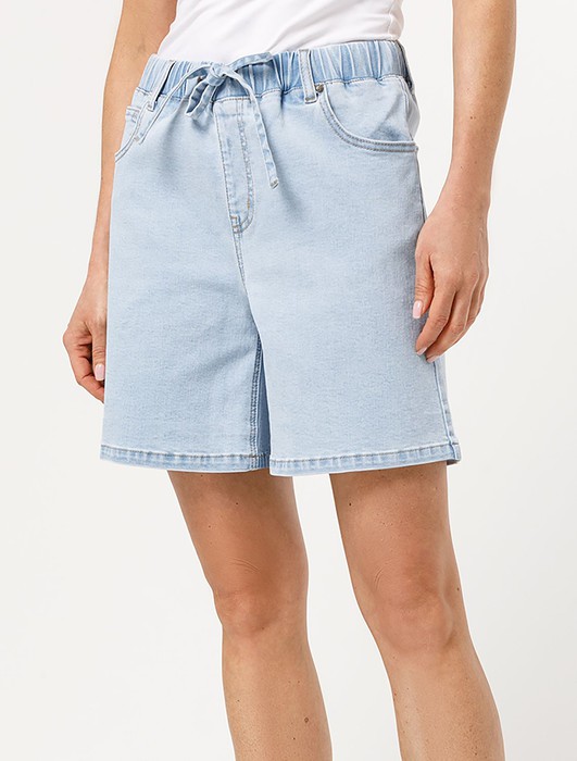 Состав: 70%Хлопок 28%ПЭ 2%ПУ Плотность: 10.9 OZ Параметры модели на первом фото: Рост 172, бюст 88, талия 64, бедра 88Шорты с легкой декоративной стиркой выполнены из эластичного денима. Модель с ложным гульфиком и поясом из эластичной резинки со шнурком из основного полотна. За счет эластана изделие хорошо тянется и гарантирует комфорт и формоустойчивость. Подходит для любой фигуры.