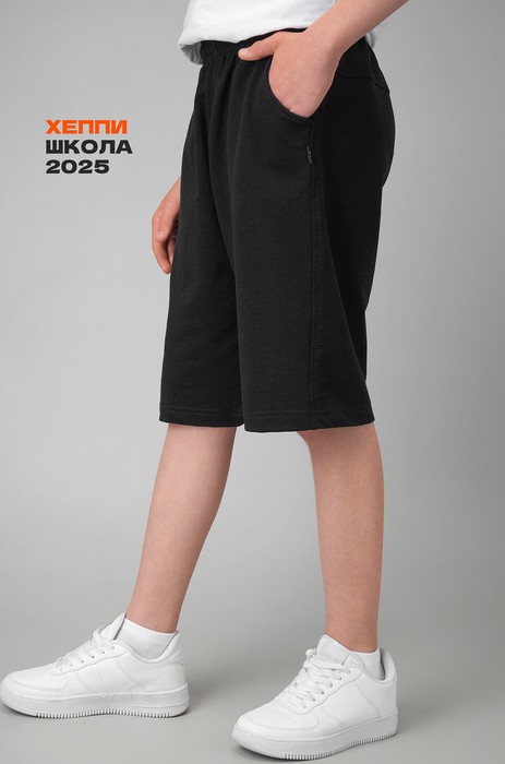 Школьные шорты для мальчиков и подростков — отличный выбор для занятий спортом, уроков физкультуры и активного отдыха.Черные шорты выполнены из плотной трикотажной ткани футер, что делает её удобной и долговечной.