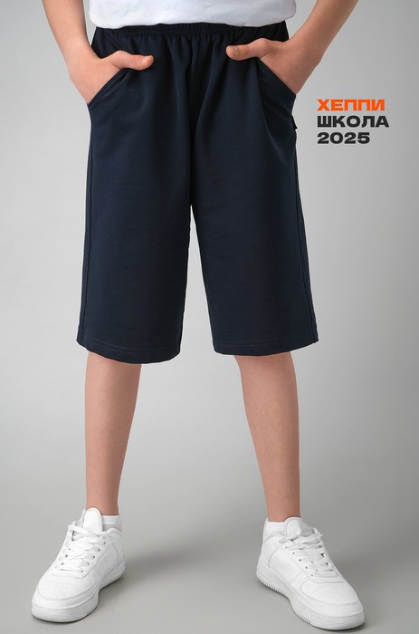 Школьные шорты для мальчиков и подростков — отличный выбор для занятий спортом, уроков физкультуры и активного отдыха.Темно-синие шорты выполнены из плотной трикотажной ткани футер, что делает её удобной и долговечной.
