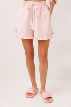 Шорты женские из гладкокрашеного тканого штапельного полотна, свободные, с карманами в боковых швах, на притачном поясе с эластичной тесьмой внутри. Средний шов передних половин обработан имитацией «гульфика»,