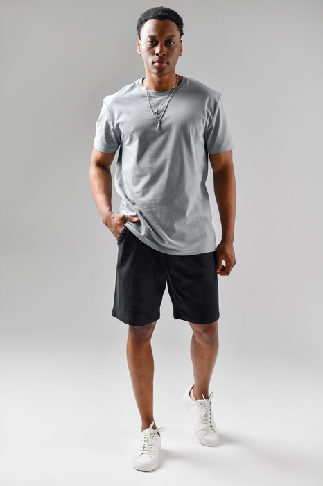 Мужские удлиненные шорты (бриджи) из трикотажного полотна с эффектом "варенки". Модель с боковыми карманами, на притачном поясе с отстроченной с эластичной тесьмой и шнуром в нем для регулирования степени прилегания.