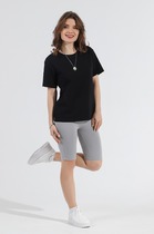 Шорты – женские из гладкокрашеного тканого полотна, свободные, длиной выше колена, с карманами в боковых швах и двумя заложенными складками по талии, на притачном поясе с эластичной тесьмой внутри. Средний шов передних половин обработан имитацией «гульфика».