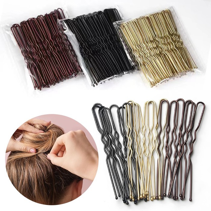 Шпильки для волос - главный инструмент для создания вечерних и повседневных причесок. Набор состоит из 50 шпилек размером 6 см. коричневого, черного или золотого цвета на выбор.