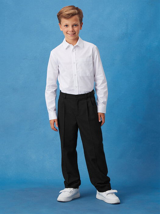 Стильные и практичные брюки со стрелками идеально подходят для школы. Изготовленные из ткани, состоящей из смеси искусственных и синтетических нитей, они обеспечивают комфорт в носке и долговечность. Застежка выполнена на удобную тесьму-молнию и дополнена петлей с пуговицей на поясе, что гарантирует надежную фиксацию.