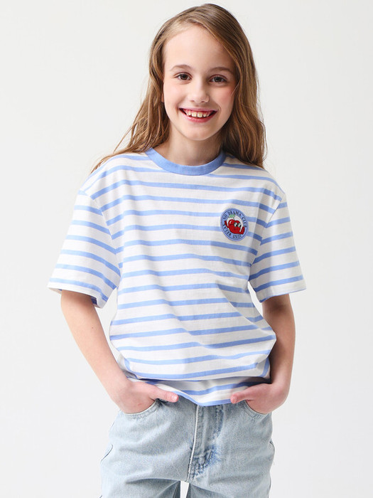 Стильная футболка для девочек. Свободный прямой силуэт и приспущенное плечо. Модель выполнена из качественного трикотажа, который отводит влагу и подходит для активного отдыха. Футболка выполнена в актуальную черно-белую и бело-голубую полоску, что позволяет вписать ее в любой гардероб. Комбинируйте футболку в ярких образах с широкими и прямыми джинсами, со спортивными брюками или шортами.